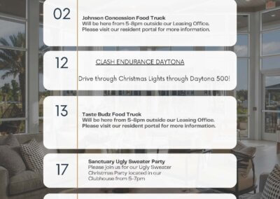 At Sanctuary at Daytona, community is more than proximity; it’s connection. Each month, we host vibrant resident events to bring neighbors together and make life here feel like home.